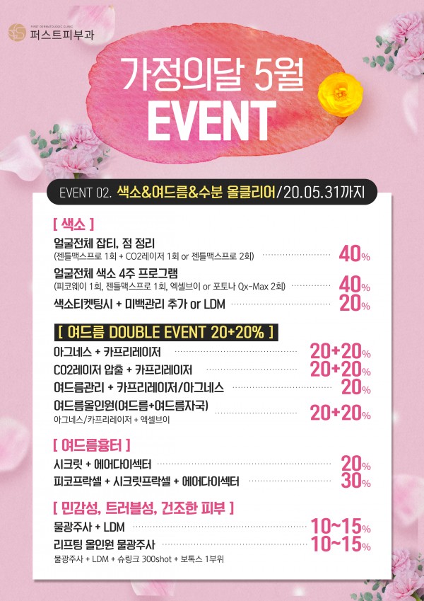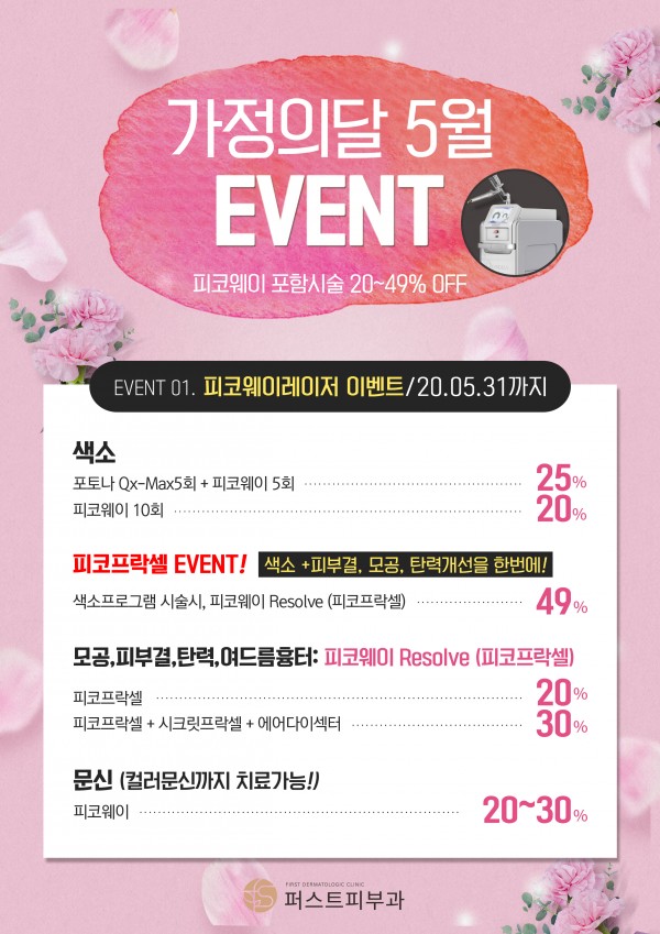 창원퍼스트피부과 5월 이벤트 페이지 정보 퍼스트피부과 등록일 20-04-29 00:00 조회 2,117회 이벤트 기간 20년 05월 01일 ~ 20년 05월 31일 이전글 다음글 목록 본문 5월 이벤트
