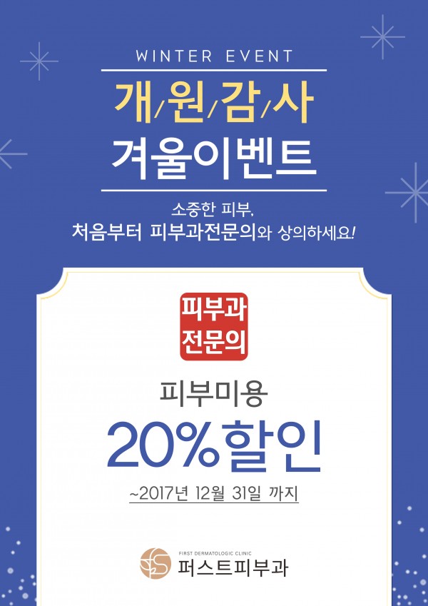 퍼스트피부과 개원기념 이벤트 페이지 정보 퍼스트피부과 등록일 17-12-07 00:00 조회 1,114회 이벤트 기간 17년 12월 01일 ~ 17년 12월 31일 이전글 목록 본문 퍼스트피부과 개원기념 이벤트 진행 합니다.