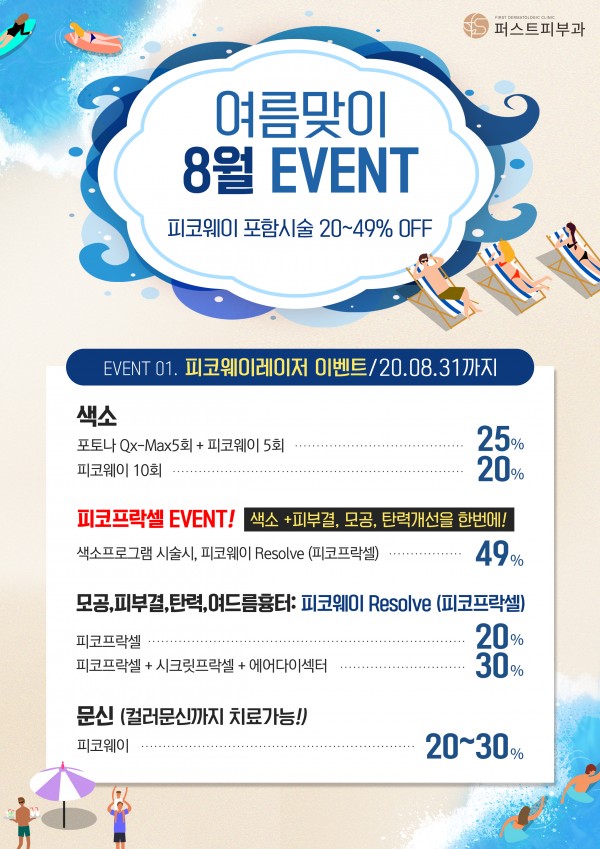 퍼스트피부과 8월 이벤트! 페이지 정보 퍼스트피부과 등록일 20-08-04 00:00 조회 1,992회 이벤트 기간 20년 08월 01일 ~ 20년 08월 31일 이전글 다음글 목록 본문 퍼스트피부과의 8월 이벤트입니다.