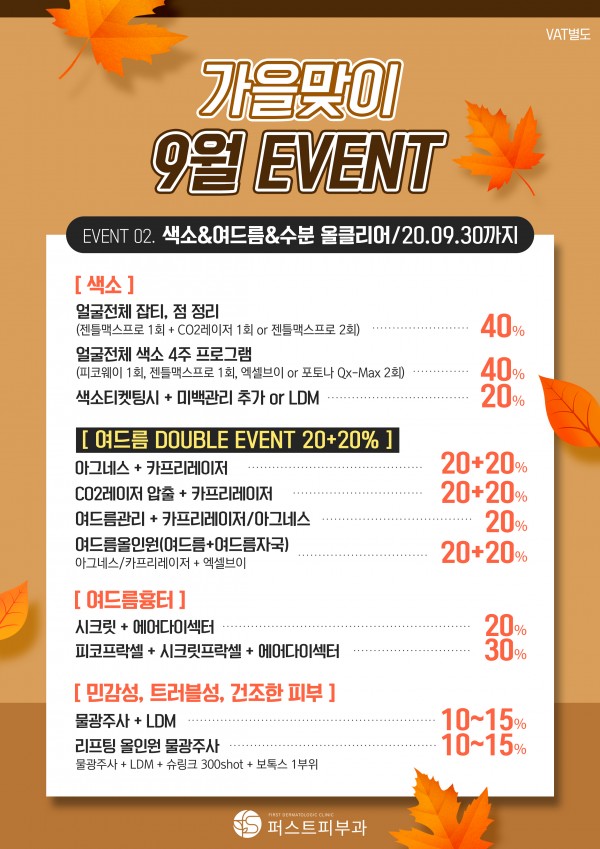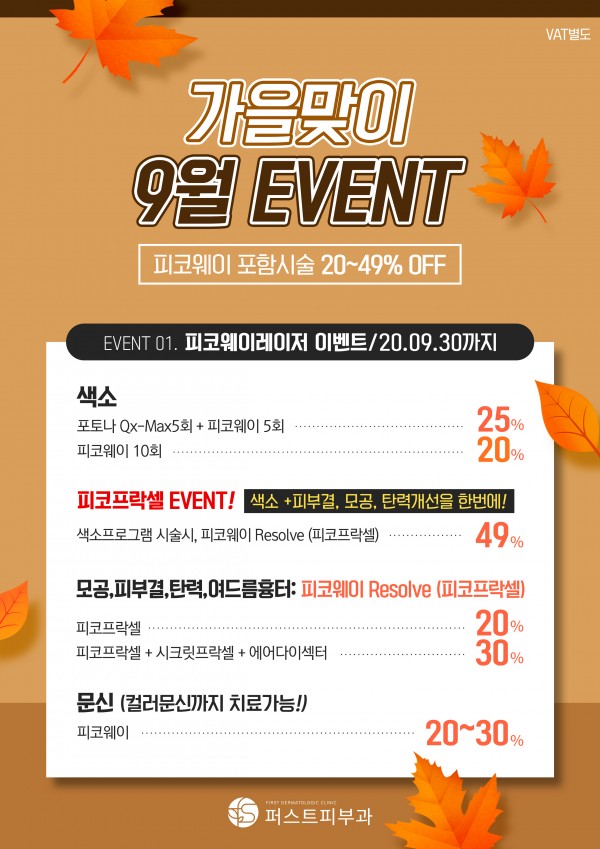 퍼트스피부과 9월 이벤트 페이지 정보 퍼스트피부과 등록일 20-09-04 00:00 조회 1,784회 이벤트 기간 20년 09월 01일 ~ 20년 09월 30일 이전글 다음글 목록 본문 퍼스트피부과 9월 이벤트를 안내드립니다.