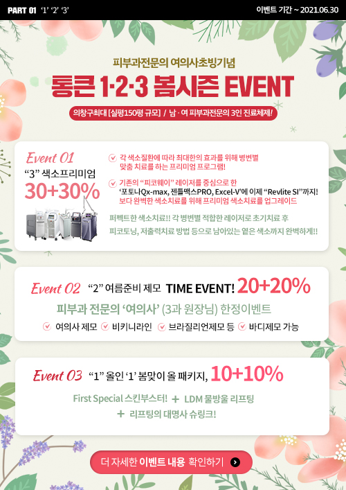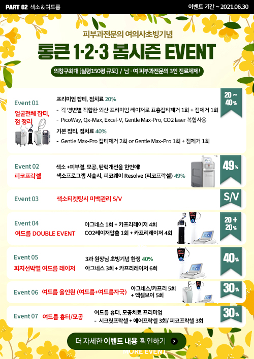 창원퍼스트피부과 4~6월 이벤트 페이지 정보 퍼스트피부과 등록일 21-04-12 00:00 조회 3,359회 이벤트 기간 21년 04월 01일 ~ 21년 06월 30일 이전글 다음글 목록 본문 창원퍼스트피부과 4~6월 이벤트 안내입니다. 모든 이벤트가 궁금하시다면? http://1stskin.co.kr/event.php