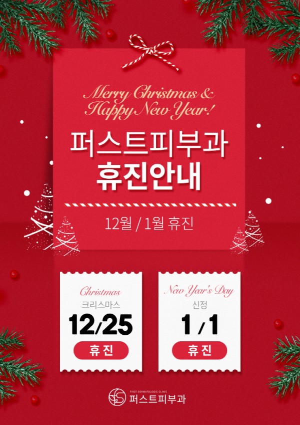 퍼스트피부과의 진료일정 안내(12월 25일, 1월 1일) 페이지 정보 작성자 퍼스트피부과 작성일19-12-18 10:56 조회1,546회 댓글0건 관련링크 본문 퍼스트피부과의 진료일정을 안내드립니다. 이전글 다음글 목록