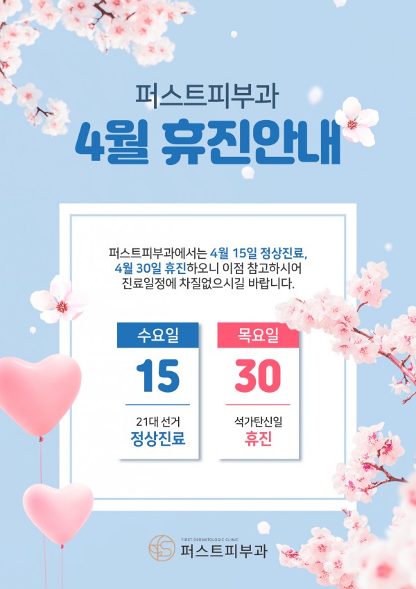 퍼스트피부과 4월 진료안내 페이지 정보 작성자 퍼스트피부과 작성일20-04-07 10:41 조회1,727회 댓글0건 관련링크 본문 퍼스트피부과 4월 진료안내입니다. 이전글 다음글 목록