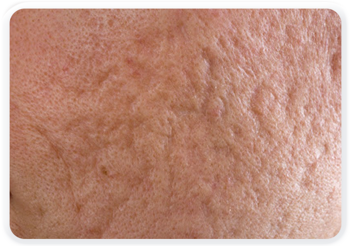 울퉁불퉁하고 함몰되어있는 여드름 흉터,