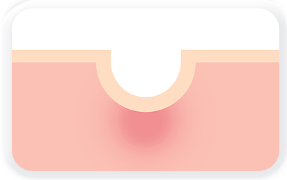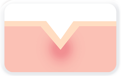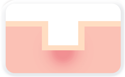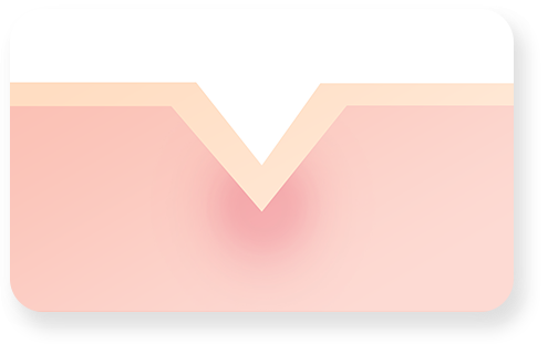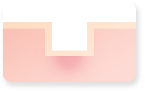 여드름 흉터의 섬유화된 흉터조직은 진피층 뿐 아니라, 피하지방층 혹은 근막층부근 까지도 존재 할 수 있습니다.