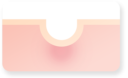 피부표면을 울퉁불퉁하게 만들며, 염증이 발생하는 모낭은 피부 깊은 곳부터