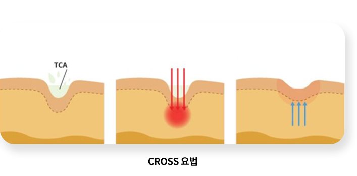화학적피부재생술인 CROSS 요법을 병행하여 치료