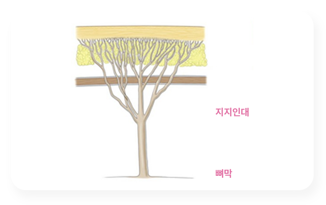 안면조직 가장 밑의 뼈부터 피부까지 나무줄기처럼 단단하게 연결시켜주는