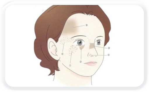 단독으로 발생하기 보다는 ‘기미’ ‘잡티’와 같은 복합색소가 동반된 경우가 많습니다.
