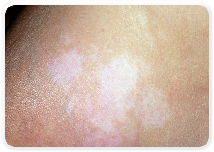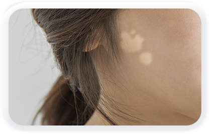 색소를 만드는 멜라닌형성세포의 파괴로 여러크기와 형태의 백색반점이