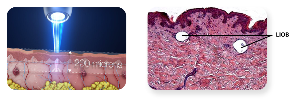피코웨이 Resolve는 폭발적인 물리적팽장으로 진피내 공동(cavity)를 만들어 (LIOB)