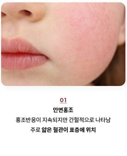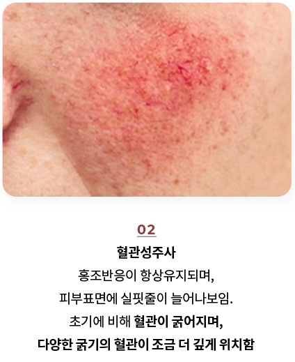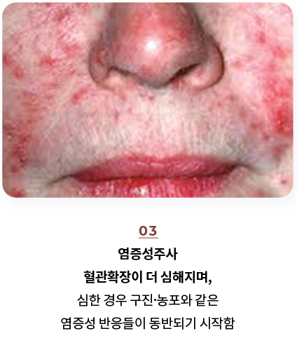 안면홍조의 시기에 따라, 혈관의 상태도 다양해지며, 심한 경우 염증이 동반될 수 있습니다.