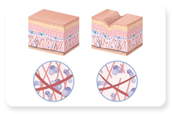 피부탄력의 전반적인 회복이 모공치료의 핵심입니다. 진피 콜라겐 재생을 통한 피부탄력 증가