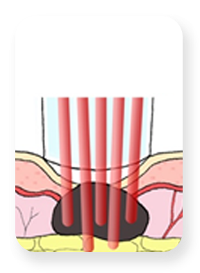 수분에 흡광도가 높은 박피성 레이저로, 점 세포를 소작하여 치료합니다.