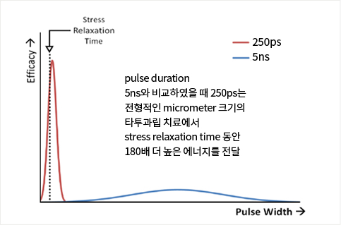 현존하는 피코레이저 중 조사시간이 가장 짧은 250ps를 이용