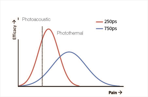 기존 nano-seconds기반의 Q-switched 레이저의 문신치료 한계